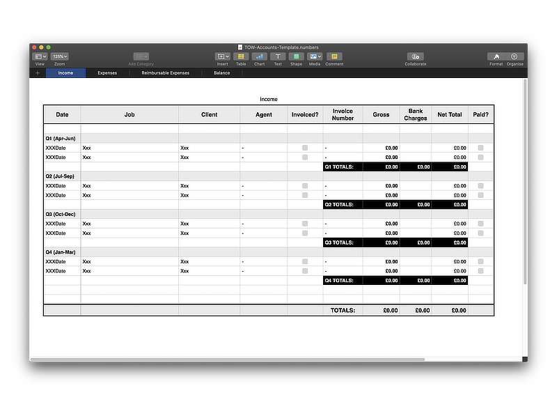 These are spreadsheet templates to help you keep track of your accounts, using the methods described in The Organised Writer. Feel free to adapt them for your own use.